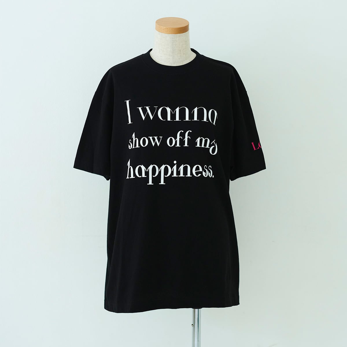 3rd collectionのテーマ「I wanna show off my happiness.」のメッセージTシャツ。袖のLola wed.ロゴもポイントです。カラーはホワイトとブラックの2色展開。ユニセックスで着られる、ビッグシルエットTシャツです。